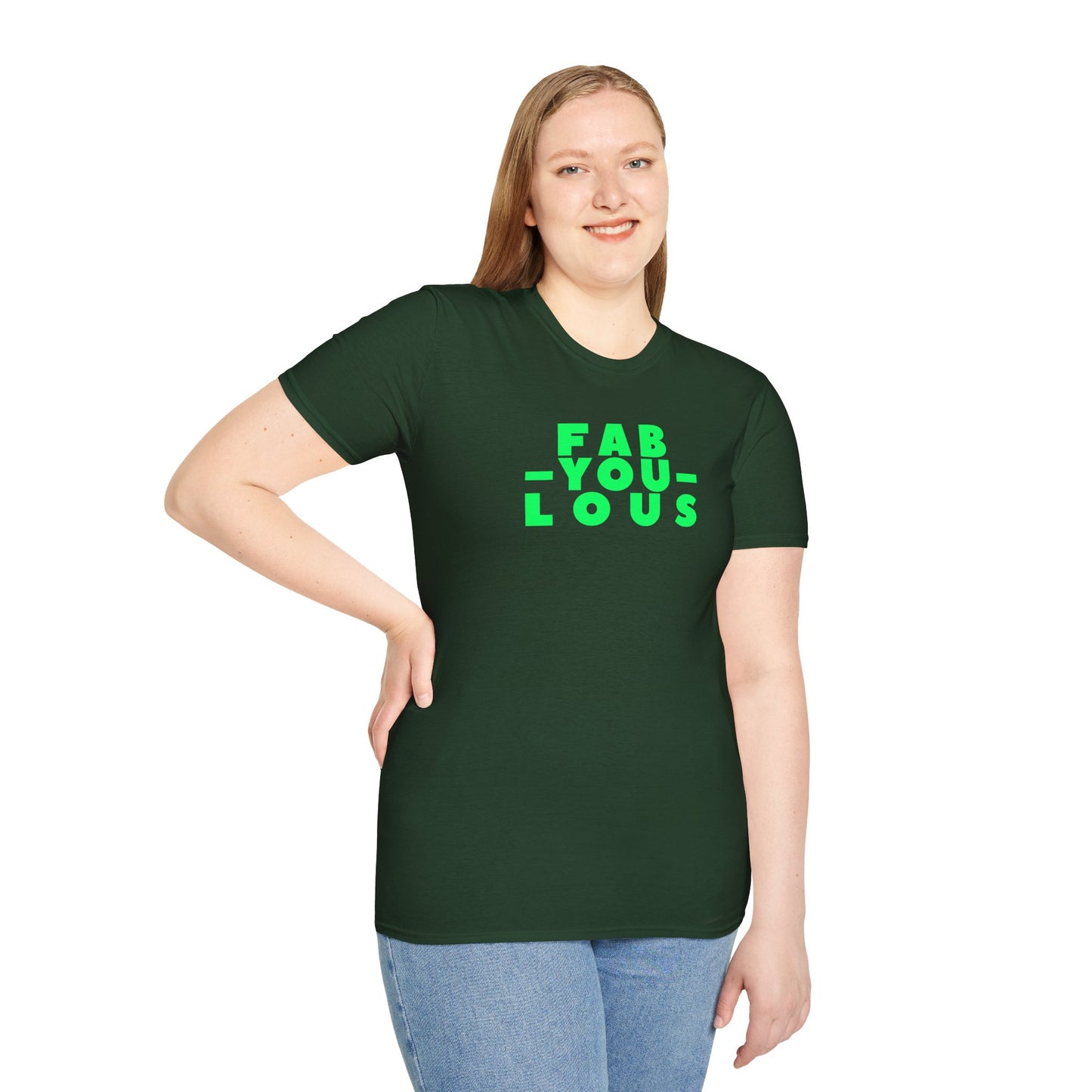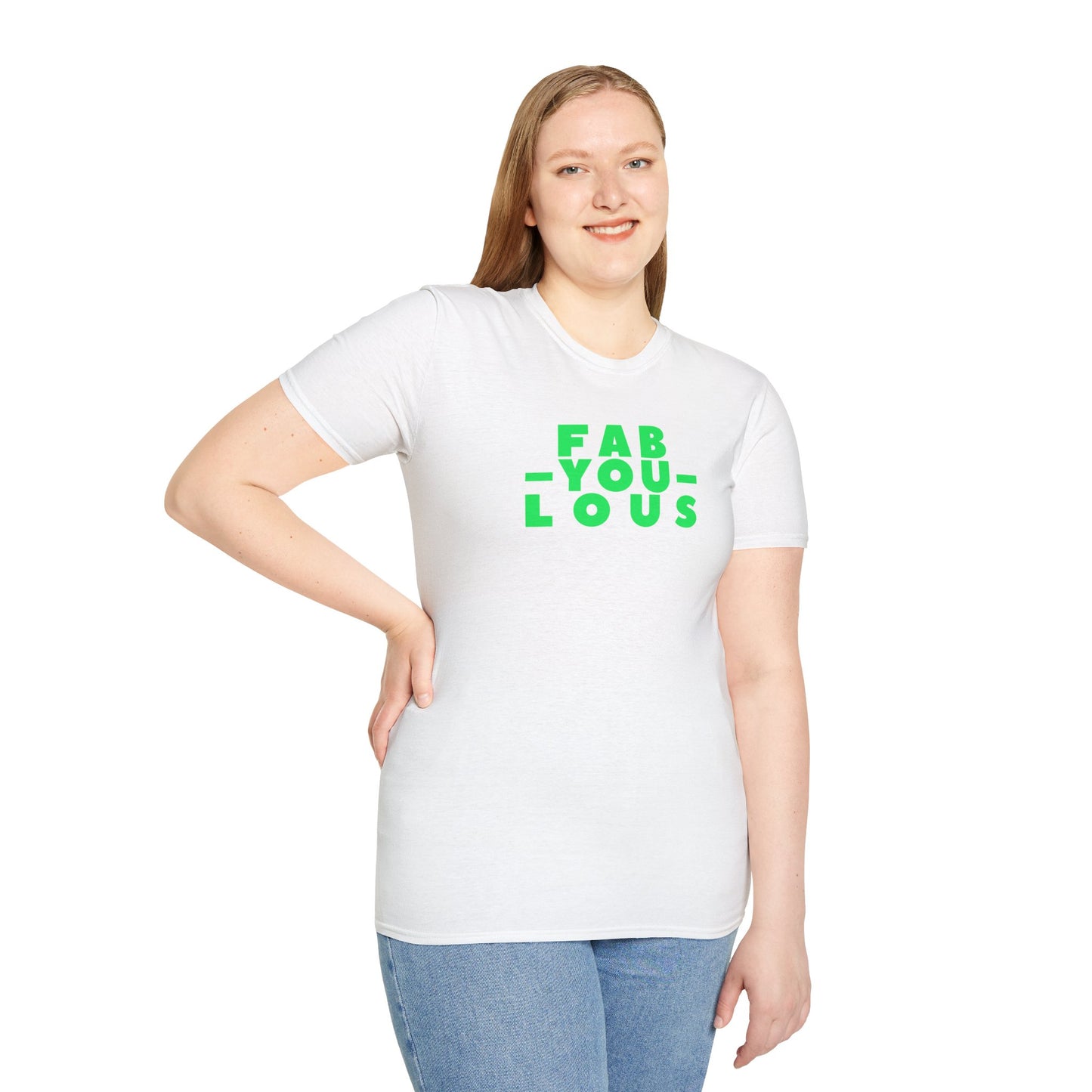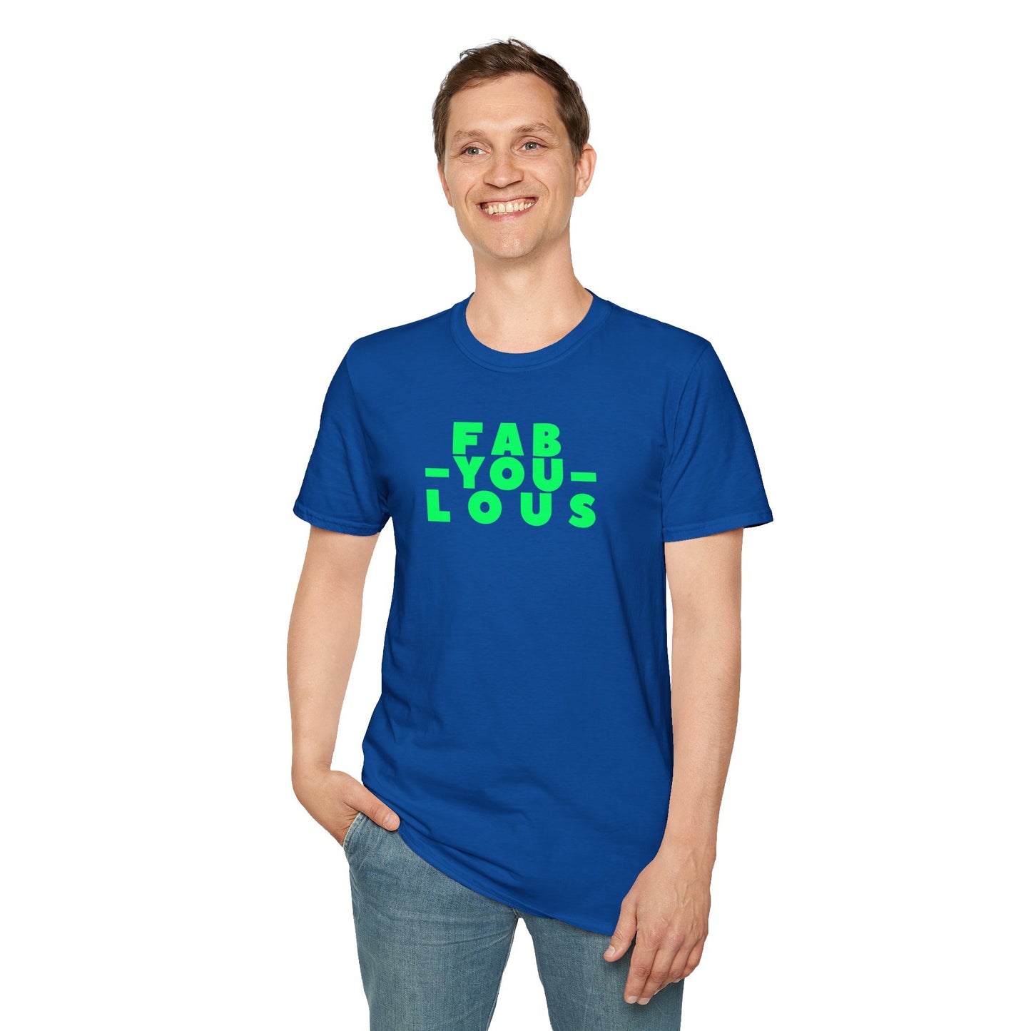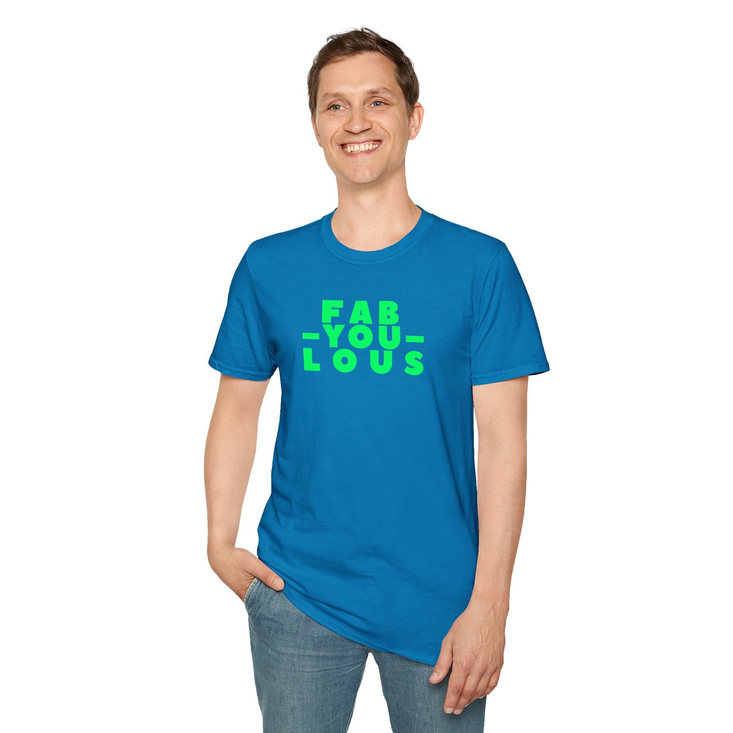 Our "FAB-YOU-LOUS" Unisex Softstyle 100% Cotton T-Shirt celebrates the unique brilliance within each person, encouraging self-expression and confidence. It's a vibrant reminder to embrace and showcase your individuality, radiating positivity and self-love in everything you do. Keep being FAB, YOU!